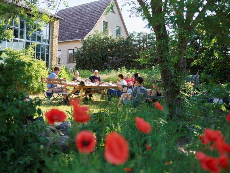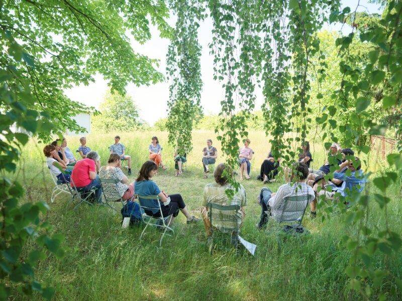Am Vorabend gab es ein gemeinsames Treffen mit den Neulandsucherinnen, das die regionale Vernetzung unterstützt und ebenfalls thematische Gemeinsamkeiten offenbarte: Lehmbau und Werkstattangebote, partizipative Stadtentwicklung, Nutzung digitaler Instrumente … Egal wie groß die Projekte sind, „Machen! Nicht reden!“ gilt für alle.