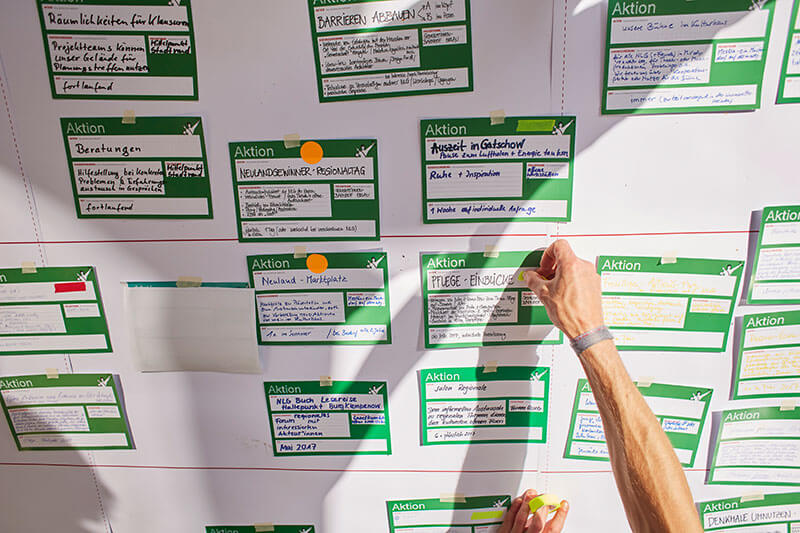 Das zentrale Ziel der Werkstatt #4 ist die Erweiterung und Verstärkung der Neulandgewinner-Bewegung durch eine bunte Mischung an unterstützenden und verbindenden Aktionen durch jedes Neulandgewinnerprojekt. Es wurden konkrete Vernetzungs- oder Transferangebote von jedem Neulandgewinner der 2. Runde gesammelt, diskutiert und zu einem Zeitplan für 2017 zusammengeführt.