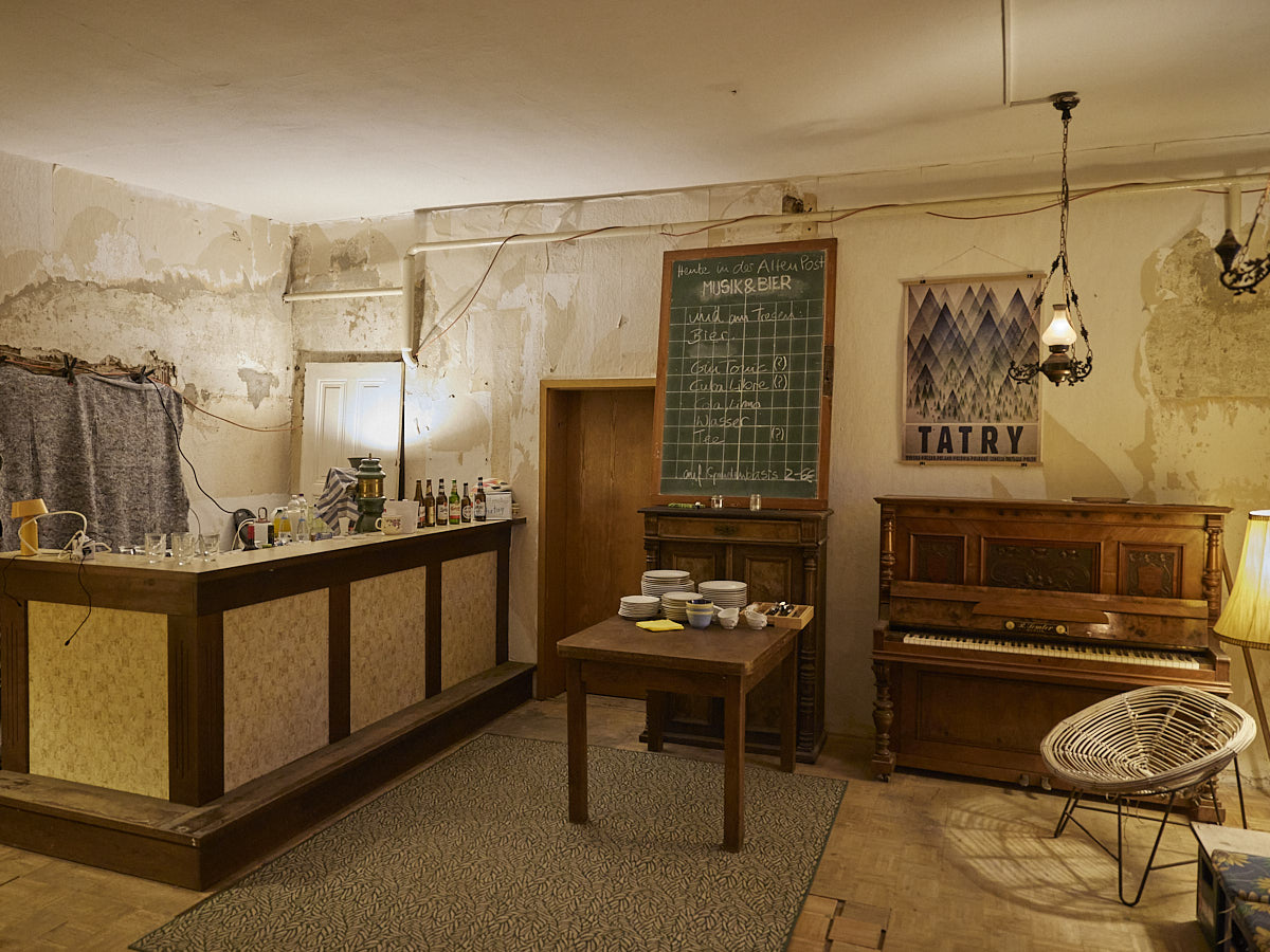 In der Alten Post ist viel Platz, unter anderem gibt es noch die alte Kneipe – ein Ort des Zusammenkommens, den sich Viele in der Stadt wünschen. Schmitt und Weiß wollen ihr Haus gemeinsam mit Engagierten teilen: Den Anfang macht ein Stammtisch zum Thema Bauen, der nicht nur ein fachlicher Austausch ist, sondern auch einer über die Bauhistorie Greiffenbergs. „Am Lagerfeuer stellt man erfreut fest“, sagt Rainer Schmitt, „dass Viele darüber nachdenken, wie man die Stadt beleben kann. Zum Beispiel mit einem Bäcker-Verein, dessen Mitglieder abwechselnd einmal die Woche Brot backen.“ Es gibt etliche Greiffenberger*innen, die Ideen für das alte Haus mit der bewegten Vergangenheit haben. Sie alle passen bestens unter die Überschrift: Neues Leben für die Alte Post.