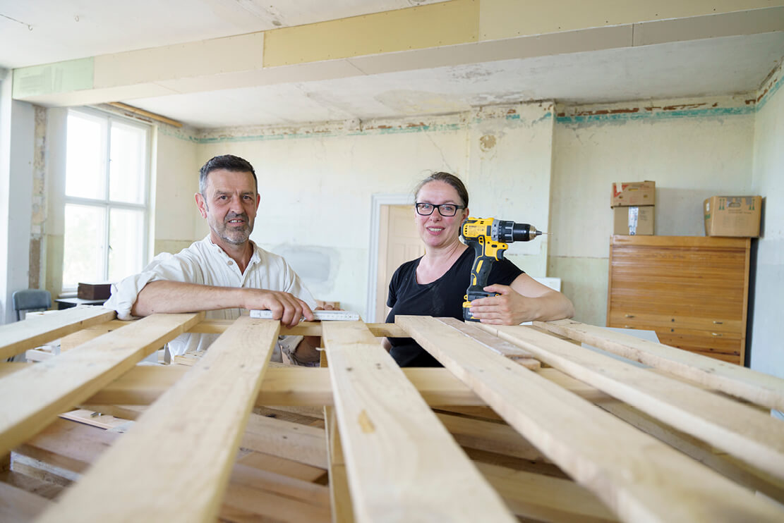 In Jahnshain, im Kohrener Land, gibt es ein leerstehendes Schulgebäude und einen bunt gemischten Haufen Menschen mit vielen verschiedenen Fertigkeiten und Spaß an Gemeinschaft. Ilke Schulz kam vor acht Jahren in den Ort und hatte gemeinsam mit anderen die Idee, dieses Gebäude wieder als Ort für gemeinschaftliches Tun und Lernen zu nutzen. Doch damit nicht genug – es soll ein Re- und Upcycling-Haus entstehen, in dem möglichst viel gebrauchtes Material erneut Verwendung findet und das zu einem großen Teil in Eigenleistung entsteht.