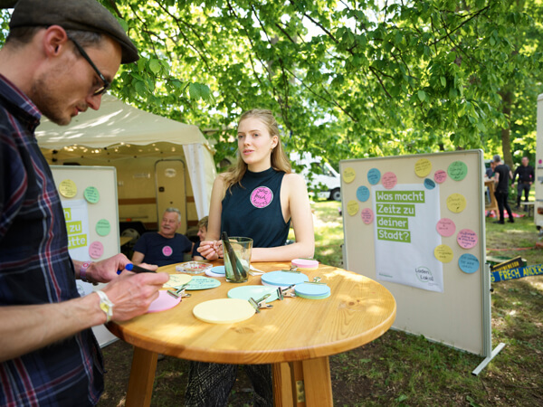 Der Ort fungiert als „Projektzentrale“ der Kreativ-Akteure, die Ausstellungen konzipieren oder andere Kultur-Veranstaltungsformate in leerstehenden Objekten in der von Verfall bedrohten Innenstadt durchführen – zum Beispiel Pecha-Kucha-Nächte, ein aus Japan stammendes Vortragsformat, bei dem ein Redner von 20 Bildern begleitet wird, die jeweils 20 Sekunden auf Wände projiziert werden. Für sein neuestes Projekt wird Thomas Haberkorn nun zum „// Kult(o)uristen“: Er möchte Ansprechpartner für Rückkehrerinnen und Rückkehrer und junge Menschen sein, die nach Zeitz ziehen wollen und sich auch fragen: Was hat Zeitz zu bieten? Was kann ich beitragen?