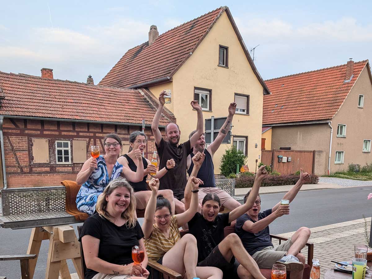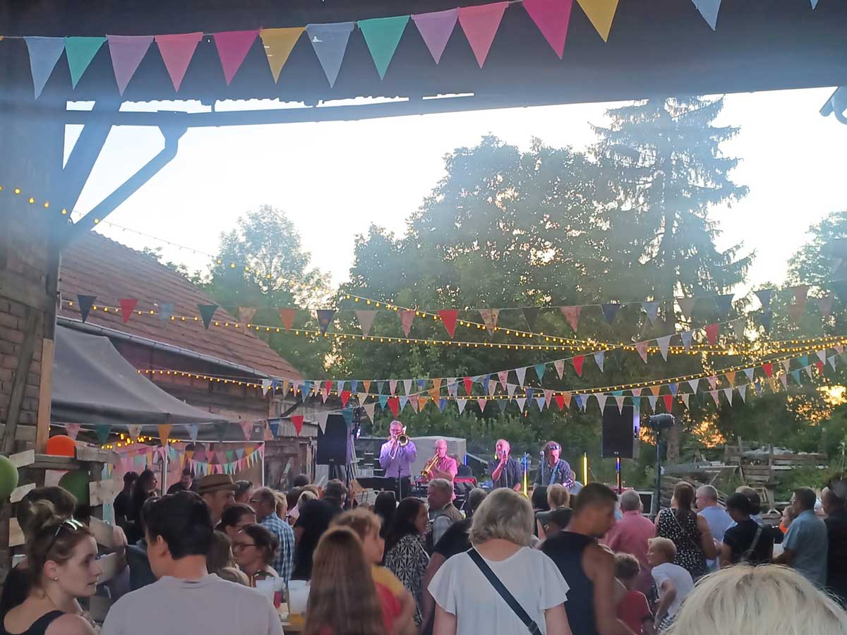 Die Bilder des Sommerkonzerts zeigen einen großen Innenhof voller Gäste, bunte Wimpel- und Lichterketten baumeln über ihren Köpfen, überall stehen Grüppchen von Menschen, die sich offensichtlich sehr gut unterhalten. Als Stadtplanerin „mit Leidenschaft für den ländlichen Raum“, wie Conny Fiebig sich selbst beschreibt, ist das jährliche Konsum-Konzert für sie ein Sinnbild ihrer Vision, im 450-Einwohner*innen-Dorf Ermstedt einen Ort zu schaffen, der nicht nur Kultur, Bildung, Unterhaltung bietet – sondern vor allem Raum zur Begegnung.