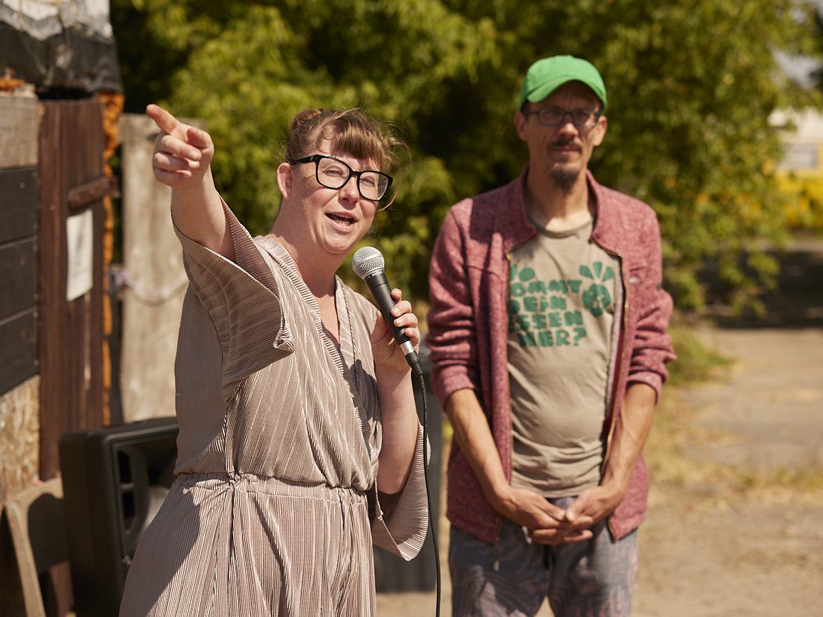 Die Dahnsdorfer*innen kennen Marie Golüke schon seit zehn Jahren als umtriebige Kulturschaffende. Denn seitdem veranstaltet die studierte Theaterwissenschaftlerin dort das „Festival Für Freunde“: Vier Tage Kunst und Kultur, an denen sich Land- und Stadtbewohner*innen, Alte und Junge, noch Fremde und Freunde begegnen. Zuerst kamen rund 30 Besucher*innen, heute sind es 400.