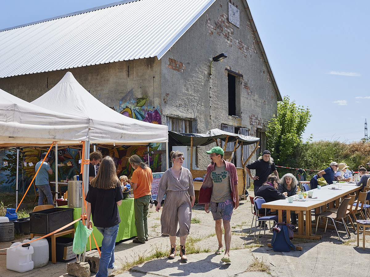 Anfangs mietete Golüke die Kuhställe jedes Jahr für das Festival. Vor drei Jahren kaufte sie das 6.500 Quadratmeter große Stück Land gemeinsam mit einem Geschäftspartner. Einen der beiden Kuhställe haben Golüke und ihre Mistreiter*innen vom Verein „Festival für Freunde“ bereits zur Theaterbühne umgebaut. Sobald die Nutzungsgenehmigung erteilt ist, geht es mit dem Ausbau des Programms weiter – Golüke will Ausstellungen, Tanztheater, Open-Air-Kino, Lesungen und Workshops nach Dahnsdorf holen.