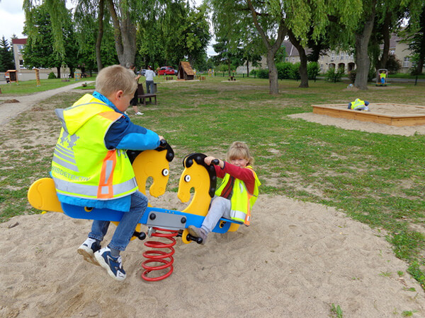 Spielplätze müssen kindgerecht sein. Das ist klar. Aber wie oft wird beim Bau auch an die Großeltern gedacht? „Ich fand die Idee eines Mehrgenerationenspielplatzes toll“, sagt Marion Ben Rabah. „Wenn die Eltern arbeiten, sind es doch oft Oma oder Opa, die auf die Kinder aufpassen.“ Der Spielplatz mit vielen Sitzflächen und auch für Großeltern komfortabler Rutsche war eines von drei Projekten, mit denen der Verein Schönfeld e.V. gemeinschaftliches Arbeiten im Dorf förderte. Das Heizhaus der ehemaligen polytechnischen Oberschule bauten die Freiwilligen zur Dorfwerkstatt aus. Brachliegende Gärten der Gemeinde wurden neu bepflanzt. Dort wird nun Gemüse für die Gemeinschaftsküche geerntet, die den Kindergarten und die Senioren der Gemeinde verpflegt. Das Ziel, Wissen und Arbeitskraft zu bündeln, hätten sie erreicht, sagt Ben Rabah. Als nächstes würden sich Verein und Helfer gern weitere brachliegende Objekte in der Gemeinde Schönfeld vornehmen – zum Beispiel das über 40 Jahre alte Schwimmbad sanieren. Denn, so Marion Ben Rabah: „An Visionen mangelt es nicht.“