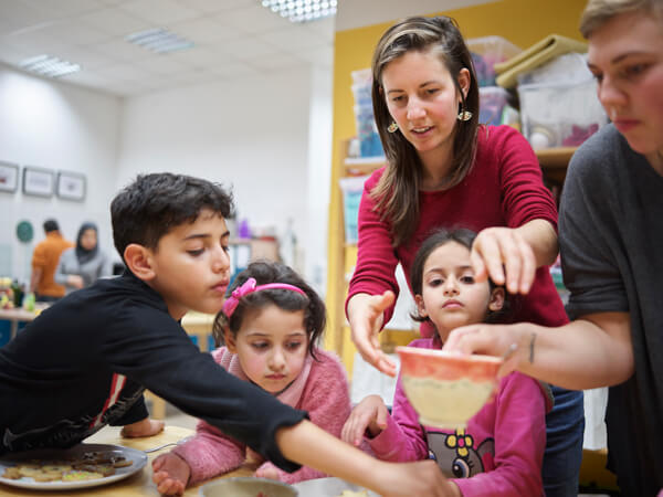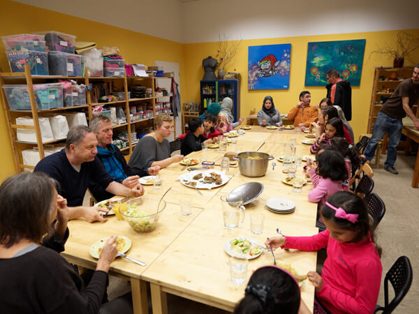 Ein Kreis aus Stühlen, in der Mitte zwei rote Sessel und jede Menge Fragen. So setzt sich der Gesprächskreis „People Meet People“ zusammen, den der Verein Respekt in Bad Belzig etabliert hat. Seit einem Jahr treffen sich dort zweimal im Monat Deutsche und Flüchtlinge in einem Raum der Arbeiterwohlfahrt, um sich kennenzulernen, gemeinsam zu essen, zu lachen und manchmal auch zu tanzen. Eine der Initiatorinnen ist Anne-Marie Schütte. Sie hat Europäisches Recht studiert, Erfahrung in der Arbeit mit Flüchtlingen. „Die Rechtsberatung war sicher sehr wichtig – aber mir fehlte der persönliche Kontakt“, sagt sie. Als im Oktober 2015 300 Syrer nach Bad Belzig kamen, entstand so die Idee, sich auszutauschen anstatt sich nur als Helfer und Hilfesuchende zu begegnen. Ganz einfach ist das nicht: „Meist ist der Gesprächskreis dreisprachig“, sagt Schütte. „Manchmal aber auch vier- oder fünfsprachig.“ Die Neugier auf den Alltag und die Kultur der anderen bremst das jedoch kein bisschen. Zwischen 20 und 30 Teilnehmer kommen regelmäßig zum Gesprächskreis. Etwa die Hälfte davon sind Flüchtlinge. Diese kümmern sich um das Essen, sagt Anne-Marie Schütte: „Manche kommen schon nachmittags, um zu kochen.“ Erst wird gemeinsam gegessen. Dann dürfen sich die Teilnehmer gegenseitig löchern. Wer eine Frage hat, nimmt auf einem der beiden roten Sessel in der Mitte Platz. Wer antworten möchte, auf dem anderen. Vieles, was in der Runde zu Sprache kommt, hat mit kulturellen Unterschieden zu tun: Was mochtet Ihr an Eurer Heimat? Warum warten Fußgänger an einer roten Ampel, selbst wenn weit und breit kein Auto zu sehen ist? Manche Fragen gehen auch ans Eingemachte: zum Beispiel, wenn ein Vater wissen will, wie er seinen Kindern die eigene Kultur vermitteln kann – auch wenn diese sich viel mehr für das neue Leben in Deutschland interessieren. „Wir lachen aber auch sehr viel“, sagt Schütte. Aus dem Gesprächskreis sind bereits einige erfolgreiche Initiativen hervorgegangen: so wie die Perkussionsgruppe oder die Kunstausstellung, die nun zu einem Symposium im Sommer ausgebaut werden soll. Damit auch andere von ihrer Methode profitieren können, wollen die Mitglieder des Vereins Respekt Seminare durchführen. Und sie planen, ihre Erfahrungen in einem Handbuch zusammenzufassen. Damit auch anderswo Gespräche entstehen.