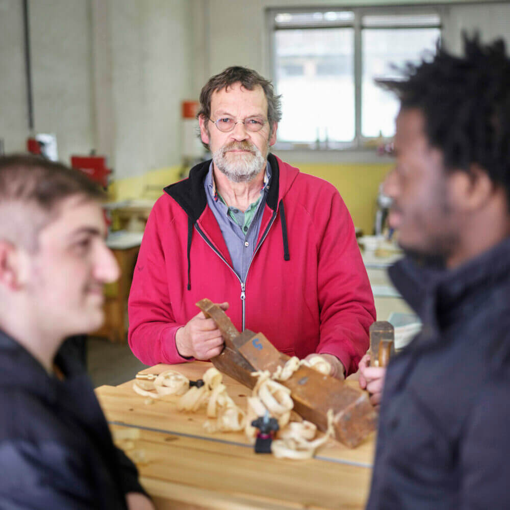 „In der Begegnung zwischen jugendlichen Flüchtlingen und Vereinsmitgliedern dörflicher Initiativen verliert ‚die Flüchtlingskrise‘ ihre abstrakte ‚Bedrohung‘“, sagt Mömkes. „Die sehr unterschiedlichen Erwartungshaltungen zwischen Einheimischen und Zugewanderten lassen sich über den konkreten Werkstoff, das Werkzeug und den gemeinsam erlebten Entstehungsprozess immer wieder neu aushandeln und miteinander abgleichen. Hilfe zur Selbsthilfe und Hilfe für andere festigen die gegenseitige Achtung und Toleranz im Sinne des Gemeinwohls.“ Als studierter Theologe, Schreiner und Leiter eines Mitarbeiterteams aus sieben Kulturen weiß er eben, worauf es für Zuzügler, Nachzügler und Umzügler ankommt.