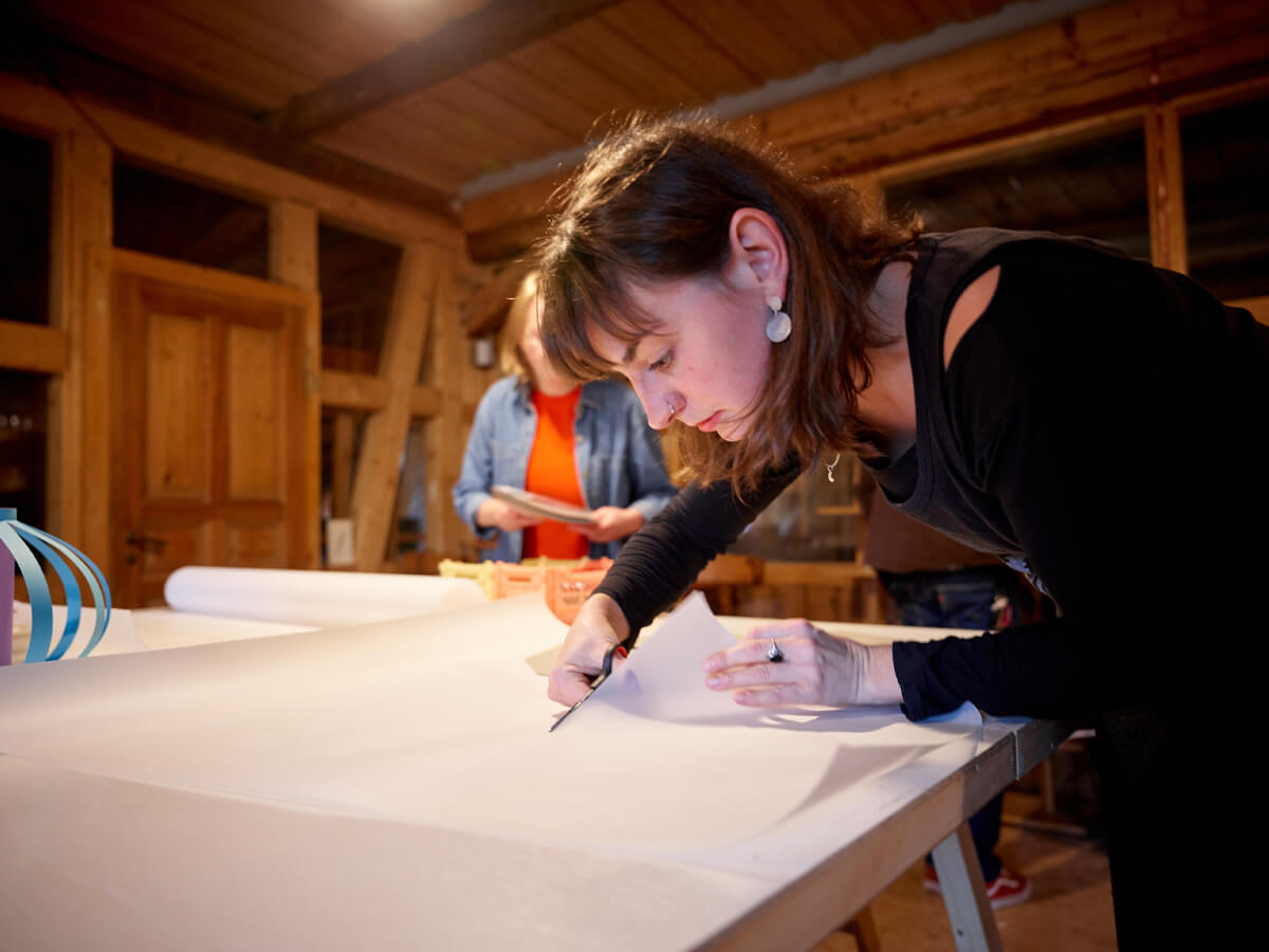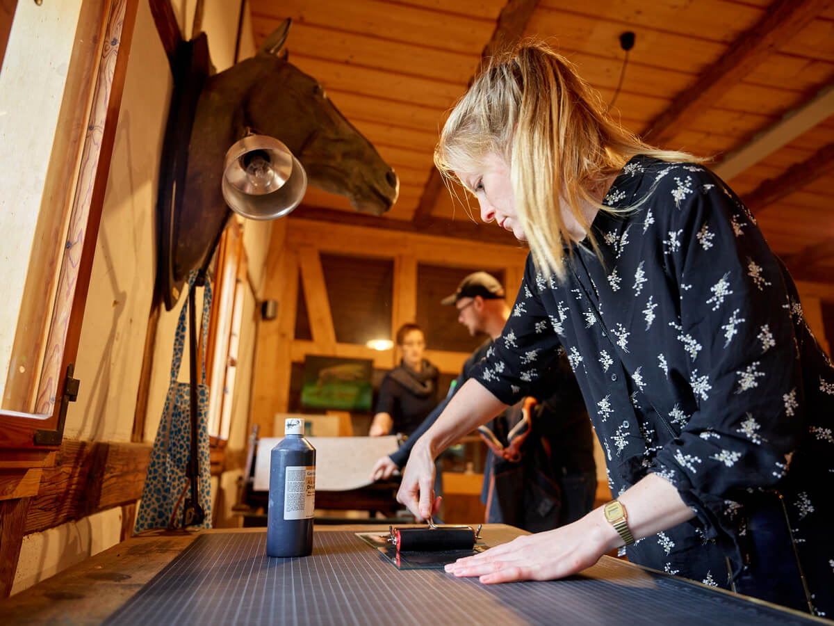 Und weil nur einmal im Jahr Festival ist, realisieren Thekla Nowak und ihr Team mit weiteren Macher*innen aus der Kulturbranche – bildende Künstler*innen, Handwerker*innen, Designer*innen und Fotograf*innen – ein buntes Kursprogramm für Jung und Alt. Diese Workshop-Reihe orientiert sich an Kursprogrammen von Jugendkunstschulen und findet regen Anklang. So wurde beispielsweise ein Familiensonntag in Kooperation mit dem Landschaftspflegeverband Westerzgebirge organisiert. Nach einer geführten Wanderung wurden Naturfunde in Form von Blättern und Gräsern im Atelier des Pochwerks abgedruckt und konnten als Erinnerung mit nach Hause genommen werden. Jetzt trubelt es also öfter in der Poche.