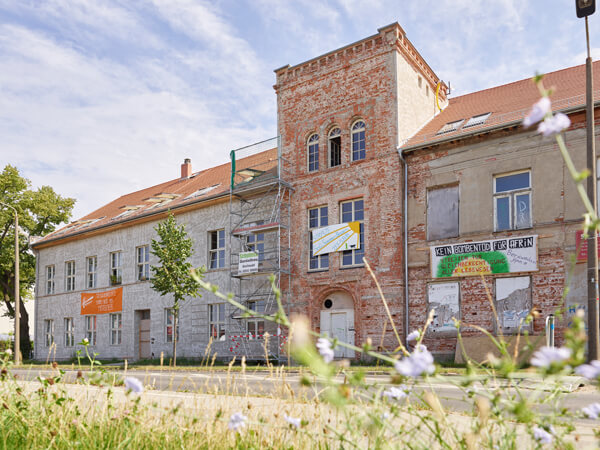 Straze und sie – das war Liebe auf den ersten Blick. Als die Bootsbauerin Nadja Tegtmeyer 2006 zum Studieren nach Greifswald kam, wäre sie gerne in die Stralsunder Straße 10 eingezogen. „Viele Freunde wohnten dort“, erinnert sie sich. Doch schon damals zeichnete sich ab, dass die WGs und Vereine, die in dem „Straze“ genannten Gebäude zu Hause waren, nicht würden bleiben dürfen. Die Universität, der das ehemalige Theater gehörte, suchte bereits nach einem Käufer. Doch der Versuch des Pfadfinderbunds, das Gebäude zu kaufen, scheiterte. 2008 übernahm ein Investor das Straze – und beschloss, es abzureißen. Sechs Jahre stemmten sich die ehemaligen Mieter dagegen. Erst 2013 willigte der Besitzer ein, an den zur Straze-Rettung gegründeten Verein Kultur- und Initiativenhaus Greifswald zu verkaufen. Mehr als 140 Freiwillige halfen, das Haus zu entrümpeln. Seit 2016 wird nun saniert. 45 Wandergesellen machten das Straze zu ihrer Sommerbaustelle – nur gegen Kost und Logis. Nadja Tegtmeyer ist für die Baukoordination zuständig und glücklich über die Fortschritte – auch, wenn sie „keinen Hausschwamm mehr sehen kann“. Die Robert-Bosch-Stiftung fördert die Ausbildung im Umgang mit altem Handwerk und regionalen Baustoffen. Und dafür hat man noch eine Menge Zeit: Denn mindestens fünf Jahre wird es noch dauern, bis alle Beteiligten ihre Büros und Wohnungen beziehen können. Doch schon jetzt begleiten Workshops und Veranstaltungen die Bauarbeiten, ist wieder Leben in dem 150 Jahre alten Gebäude.
